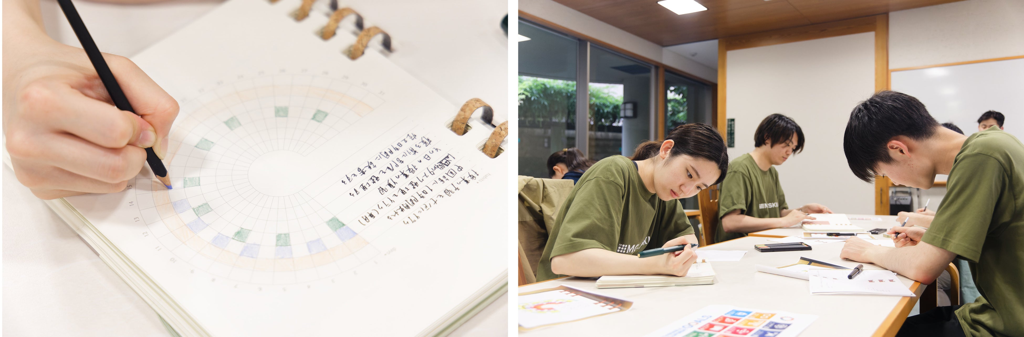 ワークショップ前には南相馬市で開催された植樹祭にボランティアとして参加し、自然災害から守るための森づくりの重要性を身にもって学べました。スパイラルアカデミックダイアリーはフルーツ廃材を使用しており、サステイナビリティへの親和性が高く、ワークショップでもサステイナブルな目標設定をした学生もいました。参加した学生たちはこの植樹ボランティアとワークショップを通じて、サステイナブルや目標設定の大切さを学びました。