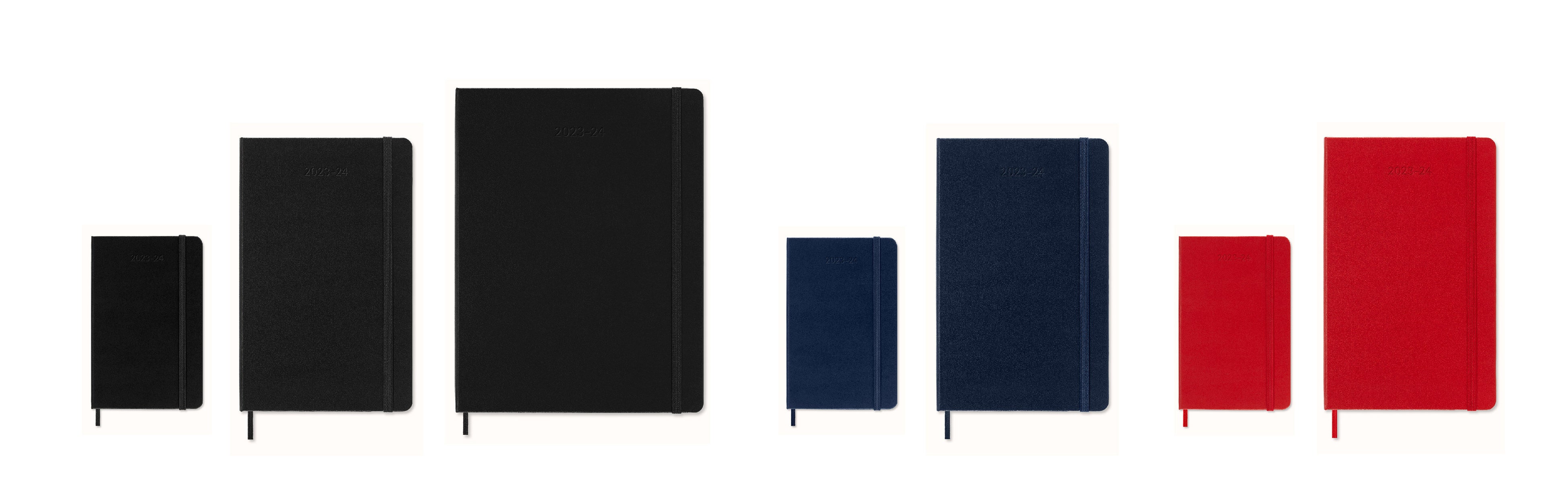 モレスキンでは、7月から始まるスパイラルアカデミックダイアリー(12ヶ月)に加えて、クラシックダイアリー(18ヶ月)も発売します。18ヶ月ダイアリーはモレスキンの定番ダイアリーの一つであり、デイリーとウィークリーの2レイアウトを展開。また、日付や年度が書かれていないスパイラルライフダイアリーとクラシックダイアリーが新しくラインナップに加わります。使いたい方のニーズに合わせた多彩なラインナップをご用意しています。