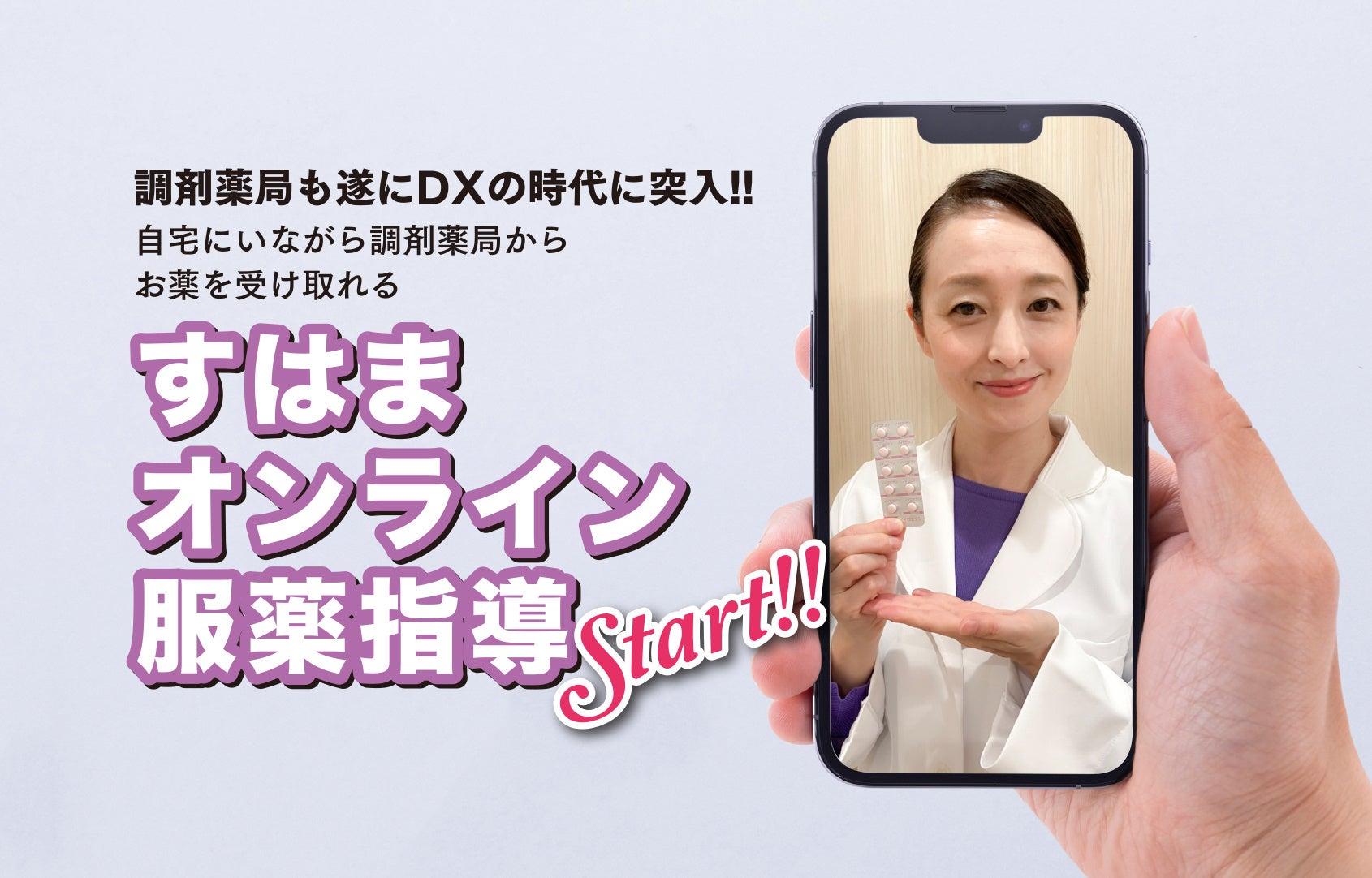 「すはま薬局」では、調剤薬局に行かなくても薬を受け取ることができる「すはまオンライン服薬指導」を始めました。