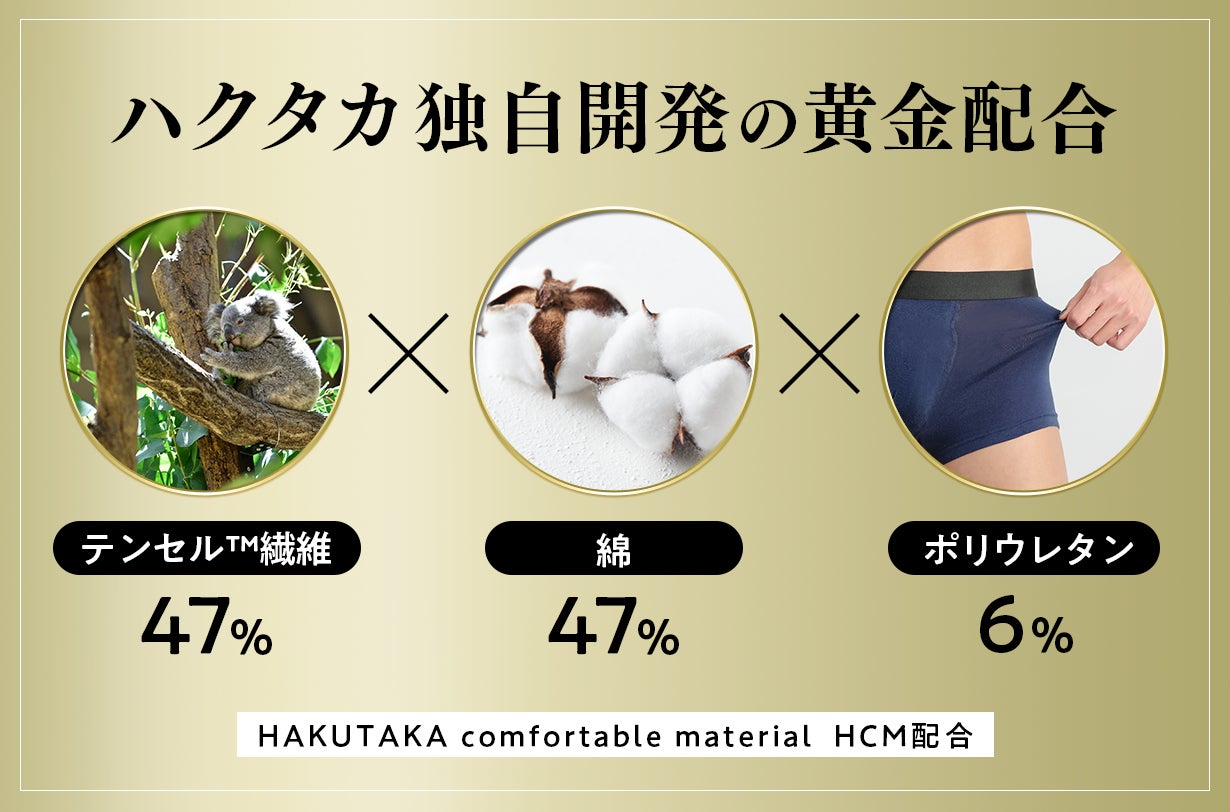 そしてたどり着いたのが、ハクタカ独自開発のオリジナル生地「HCM(HAKUTAKA Confortable material)配合」です。