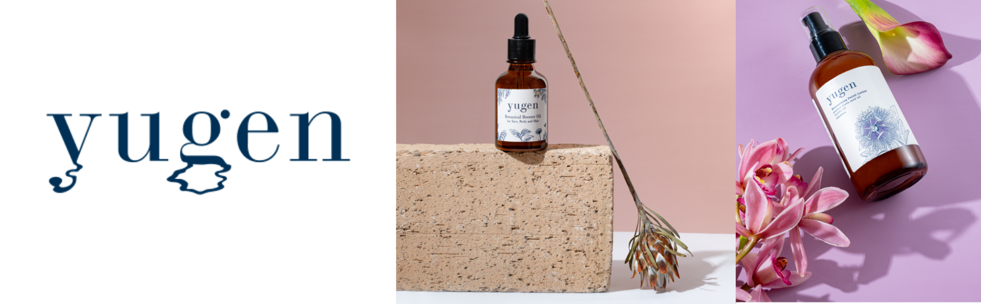 「幽玄」とは、日本人ならではの情緒で感じ取る美しさの観念の一つであり、奥の深い美でもあります。 内側に力を秘め、強さをもちつつ。そして外側は静かで、内側の力を感じさせない。 ブランド名「yugen」は、自然界のそんな「美しさ」や「強さ」をベースコンセプトとし、「植物の恵み」を活用したトータルウェルネスブランドです。 自然環境などを犠牲にしても綺麗になれればいいというエゴイスティックな「美」ではなく、 yugenは自然環境や次の世代を考えたエコでサステナブルなブランドを目指します。 優雅で優しいものの奥深くに秘めた力と美しさ。 それは地球が与えてくれる資源とそれを存続させる私たちのバランスを表すようなそんな言葉であり、 現代の私たちにとっての「幽玄」に近いものだと思います。