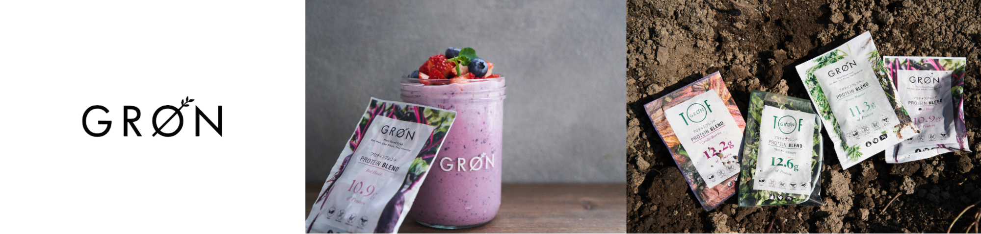 一人でも多くの人達が、自然や植物をより身近に感じながら、美しくて健康な人生を生きていくこと。GRØNはその一端を担うことを願い、探求を続けるプラントベースフードブランド。 植物性タンパクとスーパーフードをブレンドしたプロテインブレンドをはじめ、和漢スープ、グルテンフリーのプロテインパンケーキミックスを展開。