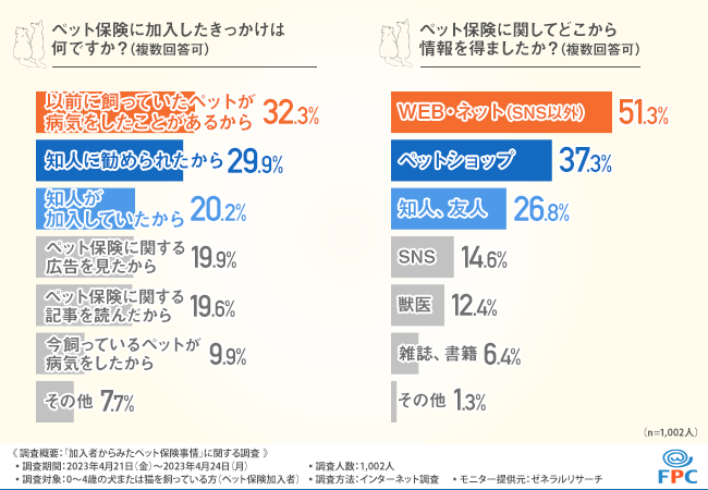 加入したきっかけは『以前に飼っていたペットが病気をしたことがあるから』が32.3%で最多