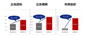 つまり、静止画に比べて動画は広告力が高く、ターゲットに与える影響も大きい。