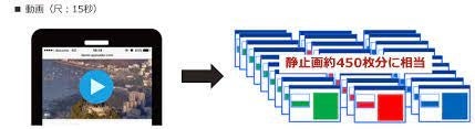 動画の与える情報量は圧倒的です。15秒の動画は静止画約450万枚もの情報量に相当し、1分の動画はWebページ約3,600ページ分に相当します。