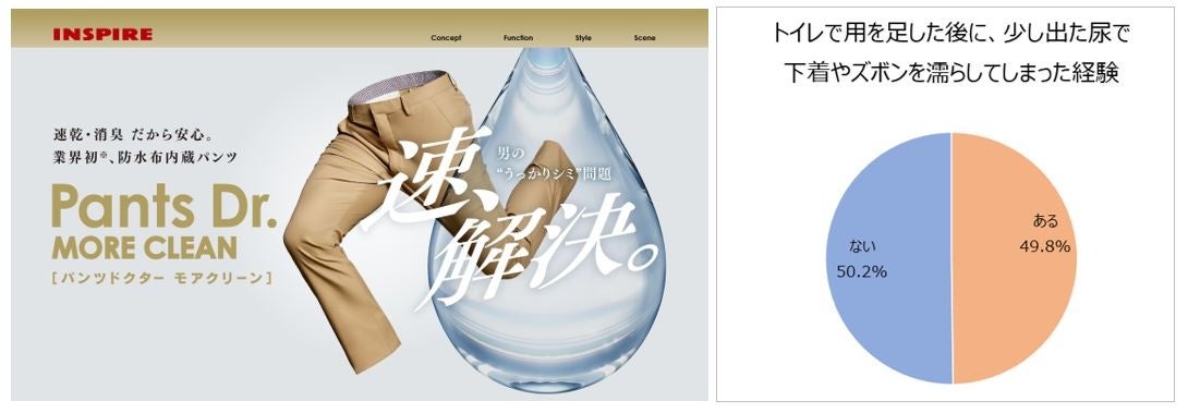男性のトイレ事情に関する調査実施!約半数はトイレ後の“うっかりシミ”を経験!20代でも3割以上。トイレを借りる場所1位「コンビニ」2位「スーパー」3位「駅」。トイレのトラブルも怖くない!スラックス発売