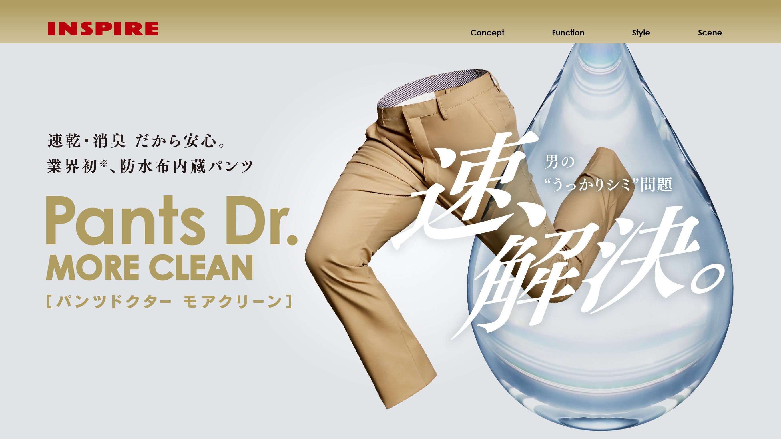 スマートなシルエット、ストレッチ素材による履き心地、うっかりつけたシミ対策にもなる速乾性など、ファッション性+機能性に優れた男性用スラックス「Pants Dr. MORE CLEAN」が新登場!