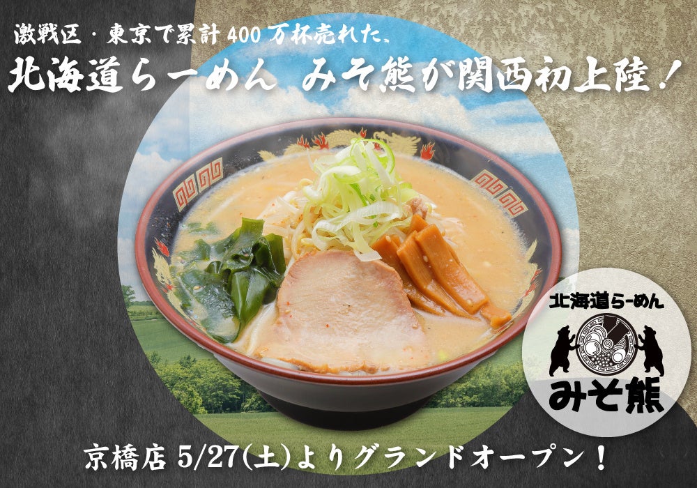 関東で累計400万杯を販売した人気らーめん店みそ熊が関西初上陸!