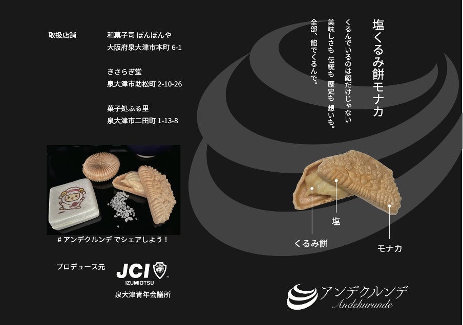 今回、この伝統和菓子の新しい味として「塩味」を企画。また、最中の皮で包むことも考案し、昭和8年創業の老舗和菓子司「ぽんぽんや」と共同開発しました。古くから守られてきた伝統と、新しい発想を組み合わせた温故知新の文化として「アンデクルンデ」を発信します。