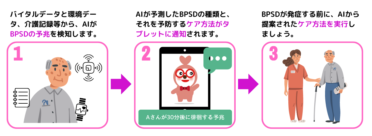 ~バイタルデータや環境データからBPSDを予測し、適切なケア方法も導出する自律型AIを開発し、介護施設や在宅介護等において活用できるサービスを構築~