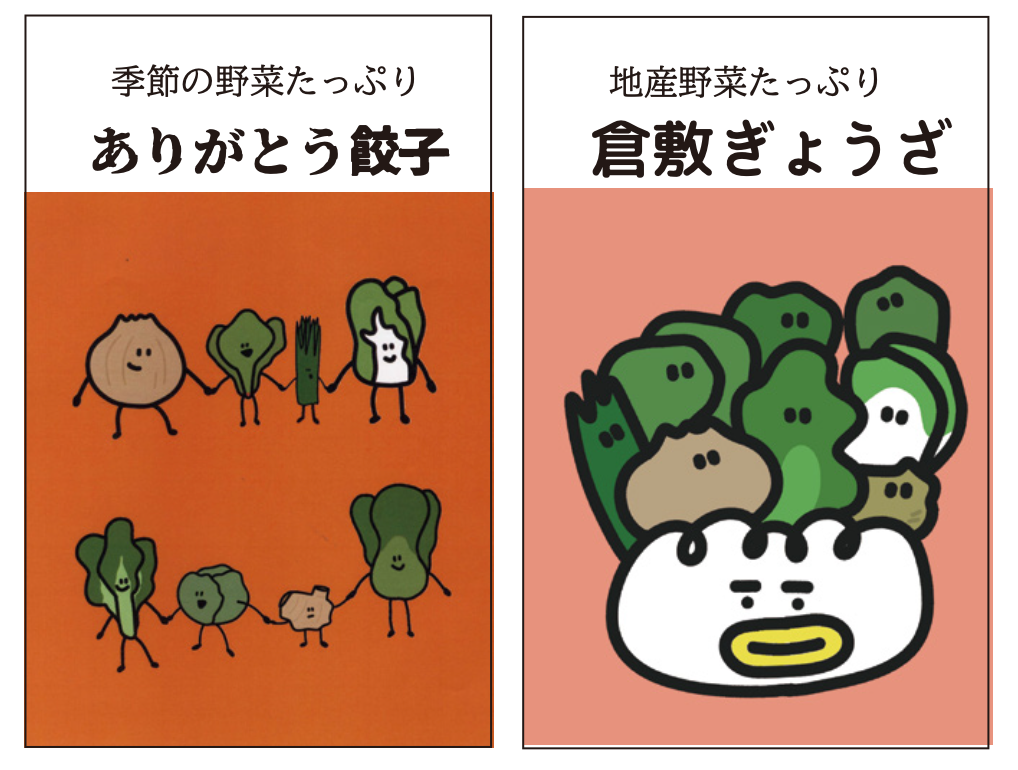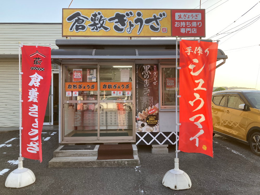 主力商品は「倉敷ぎょうざ」。鹿児島県黒豚「六白」と岡山県産白豚をミックスした肉汁あふれる餃子です。また減臭にんにくを使用しているため、「翌日においが残らない餃子」として地域の皆さまよりご愛顧いただいております。