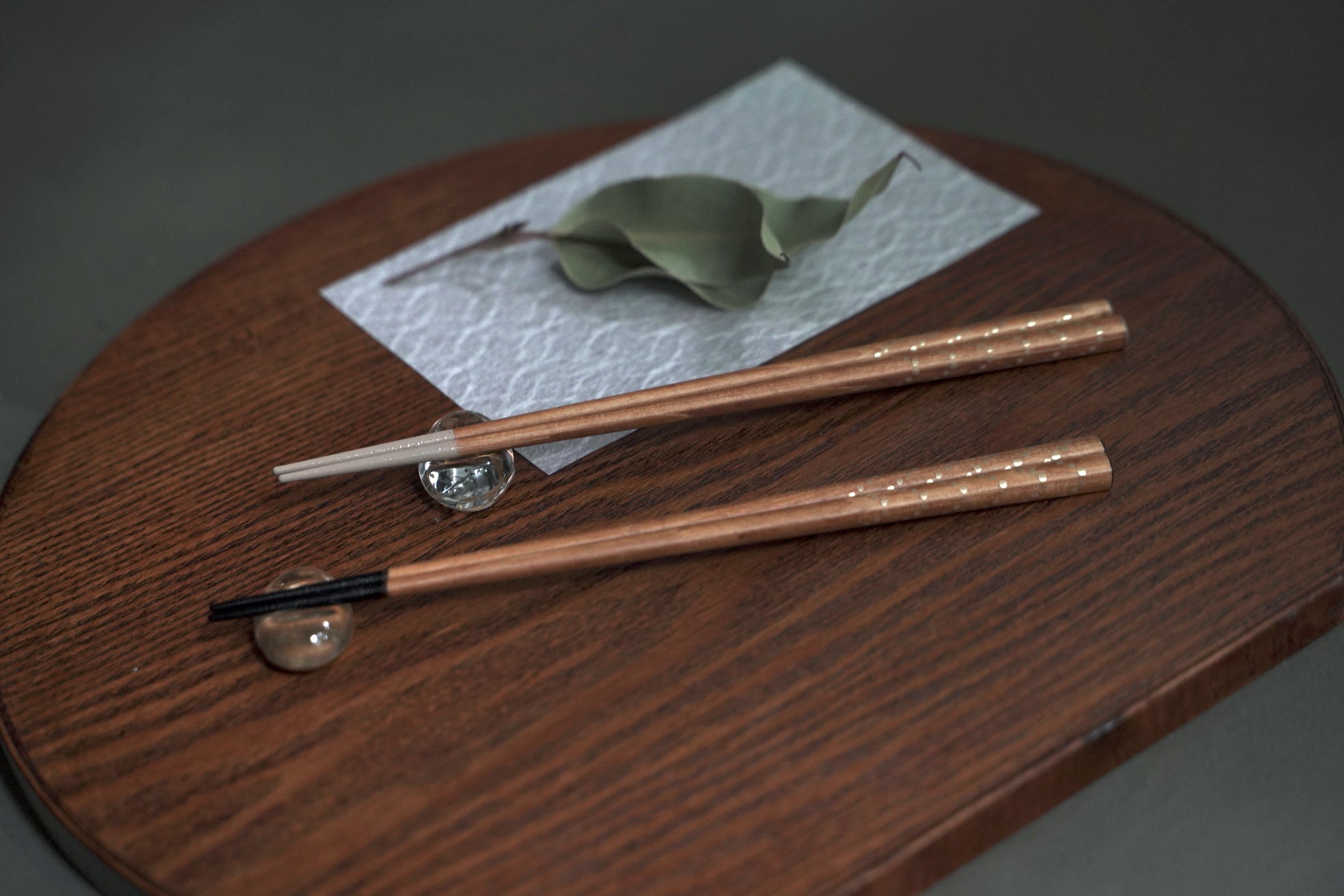 能登の里山で育った能登ヒバを木地とし天然漆で仕上げた優しい手触りで軽い持ち心地のお箸です。