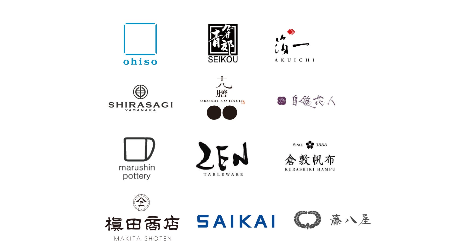 自遊花人(石川県)、丸新製陶(岐阜県)、アーテック(岐阜県)、倉敷帆布(岡山県)、槙田商店(山梨県)、