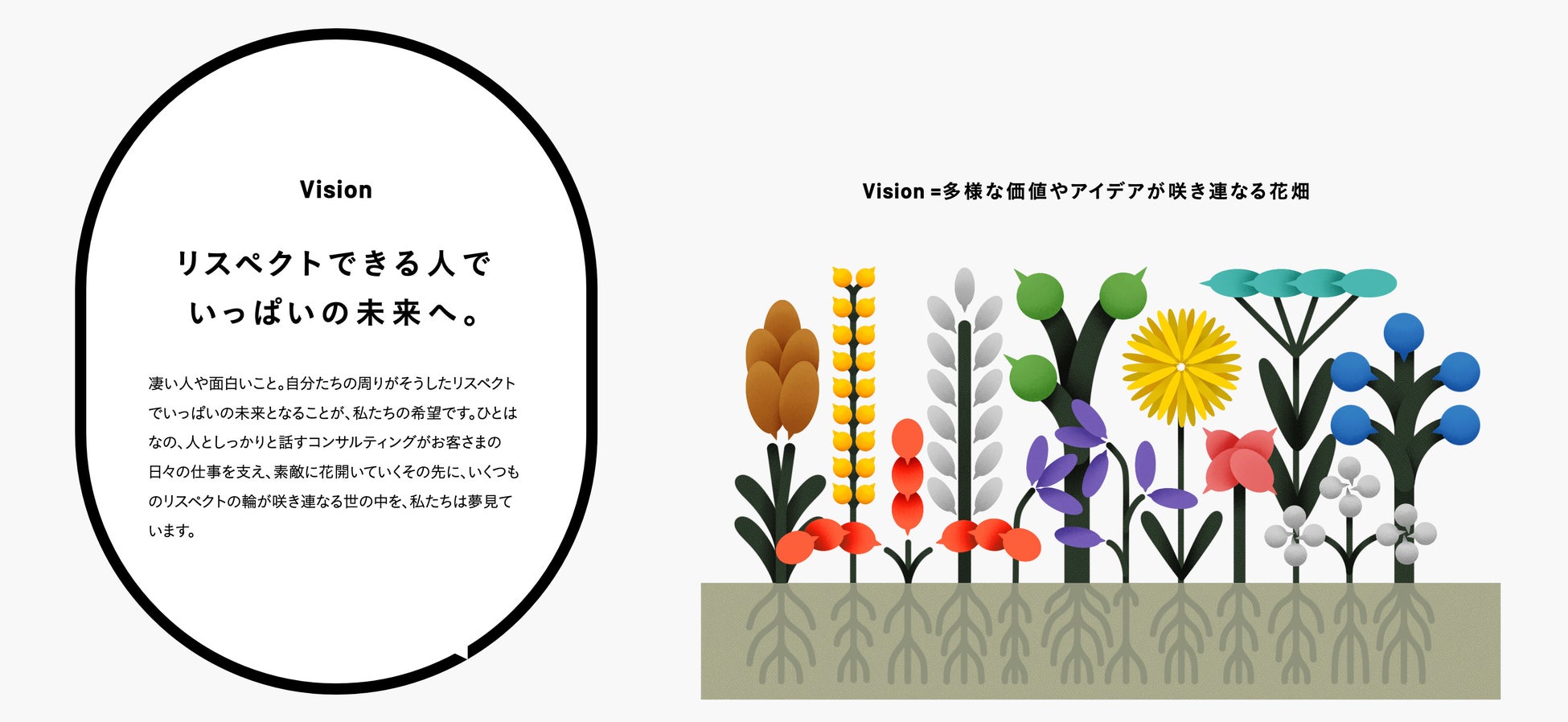ひとはなコンサルティングは2023年4月に5期目を迎え、私たちの理念と価値観を表現するためにブランディングの原点となるミッション・ビジョン・バリューを定め、企業ロゴとコーポレートサイトを刷新しました。「リスペクトできる人でいっぱいの未来へ。」というビジョンを実現するため、“人と話す”ことを軸にお客様や従業員、関係会社など全ての人たちと接していく弊社の姿勢をロゴやコーポレートサイトに落とし込みました。弊社のコンサルティングがもっと身近に頼れる存在になっていくことを目指し、幅広く活動していく所存です。