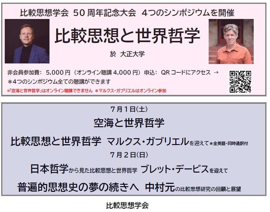 比較思想学会 創立50周年記念大会 開催迫る(7月1日、2日、於大正大)