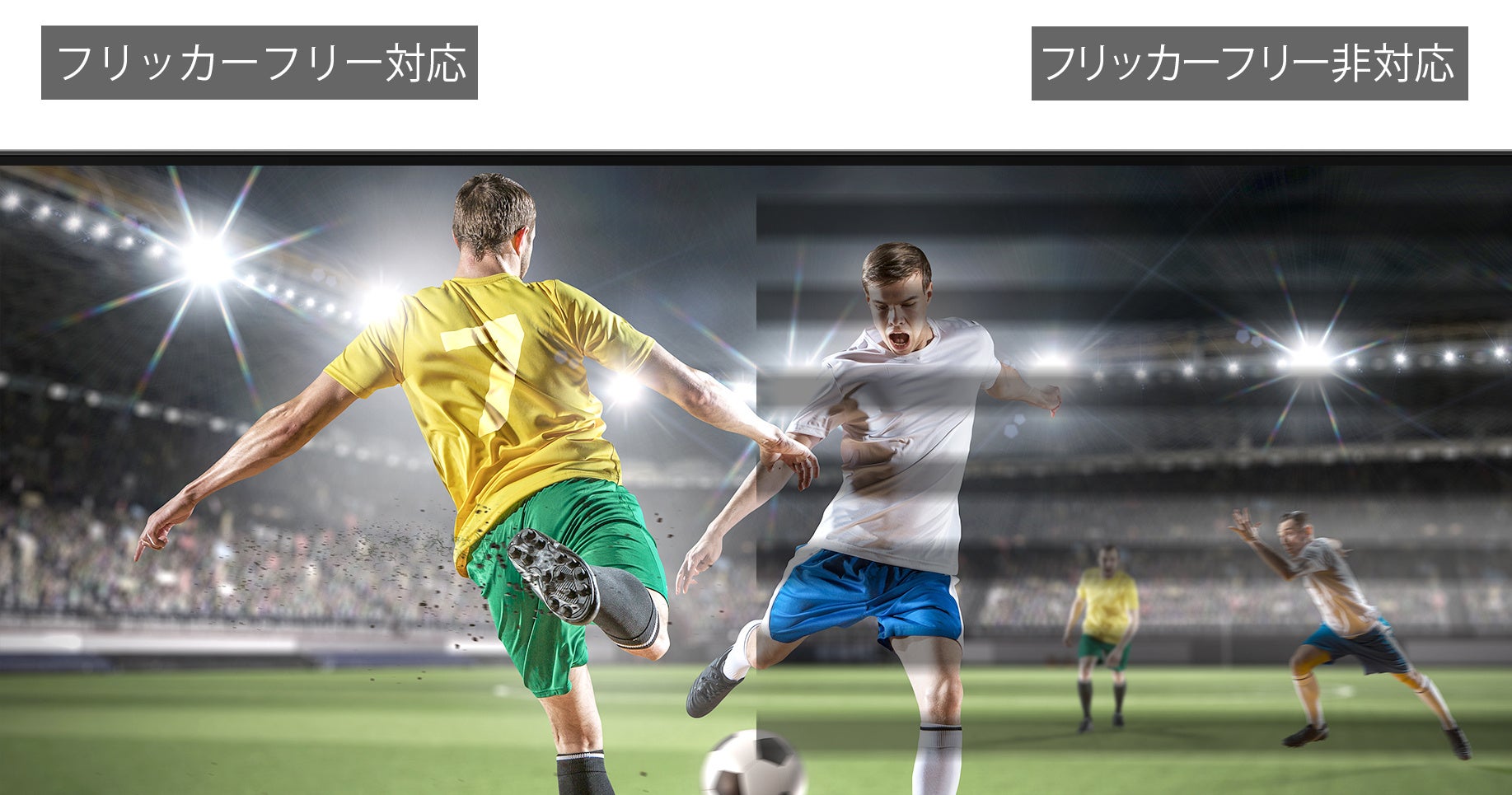 通常のモニターは1秒のうちに200回ほど明滅(フリッカー)します。フリッカーフリー機能は、肉眼では認識できないこの画面のチラつきを抑え、無自覚のうちに蓄積する目の疲労を軽減させます。