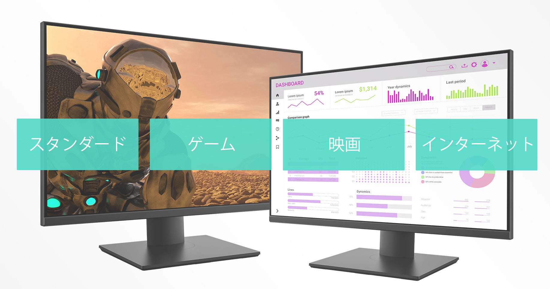 メニューから呼び出すだけで、用途に合わせて最適化された表示設定でご使用いただけます。