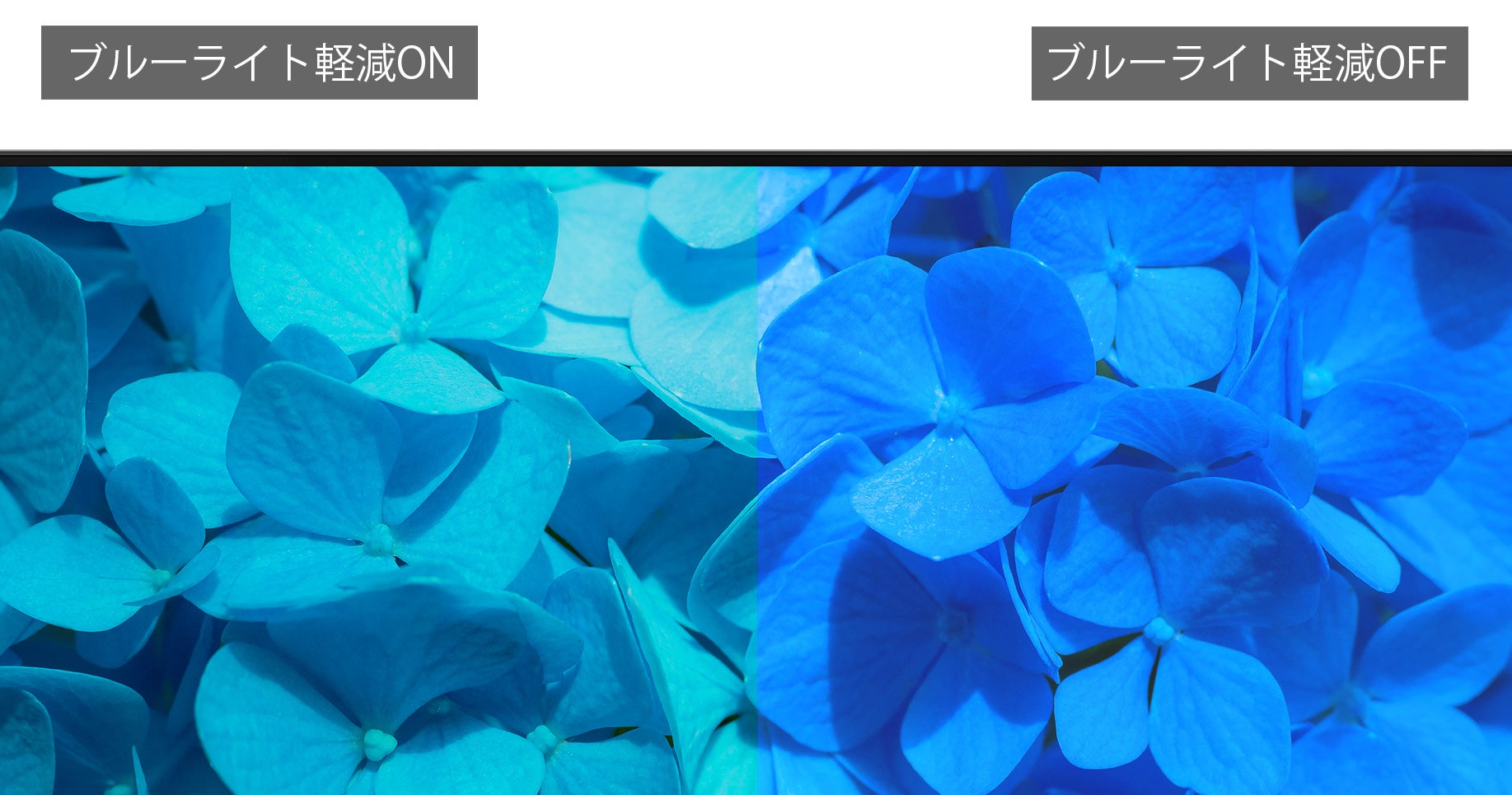 ブルーライトは体内時計を刺激し、生活リズムに悪影響を与えます。この機能をONにすることでモニターの発するブルーライトを大幅にカットし、長時間の作業でも疲れにくい環境に最適化します。