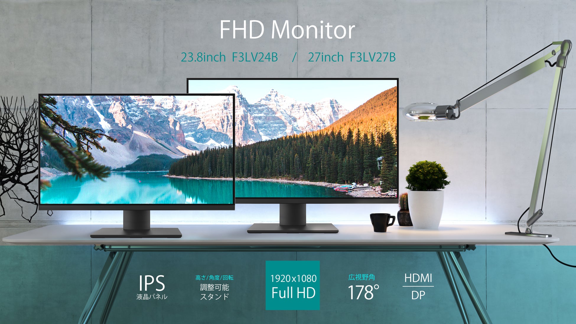 「F3LV27B」「F3LV24B」は家庭でもオフィスでも使いやすい23.8インチと27インチの液晶モニターです。