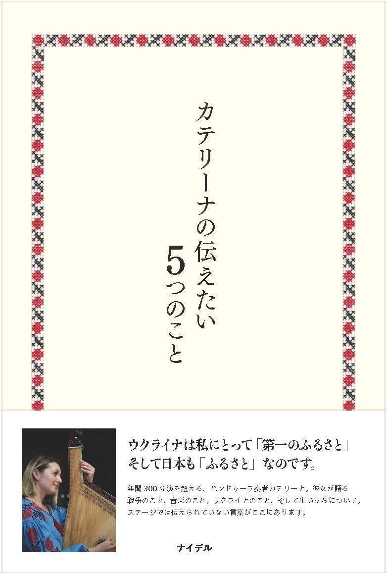 新刊『カテリーナの伝えたい5つのこと』はカテリーナが生まれてから現在に至るまで、その音楽活動を通して感じてきたことを、「生い立ち」「音楽のこと」「戦争のこと」「ウクライナのこと」「夢」の5つのテーマに分けてまとめたものになっています。
