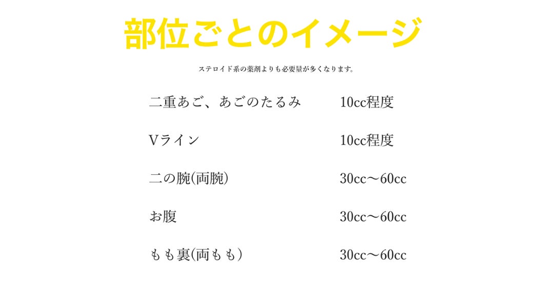 ・初回カウンセリング、医師の診察後ご希望の部位によって使用容量が決まります