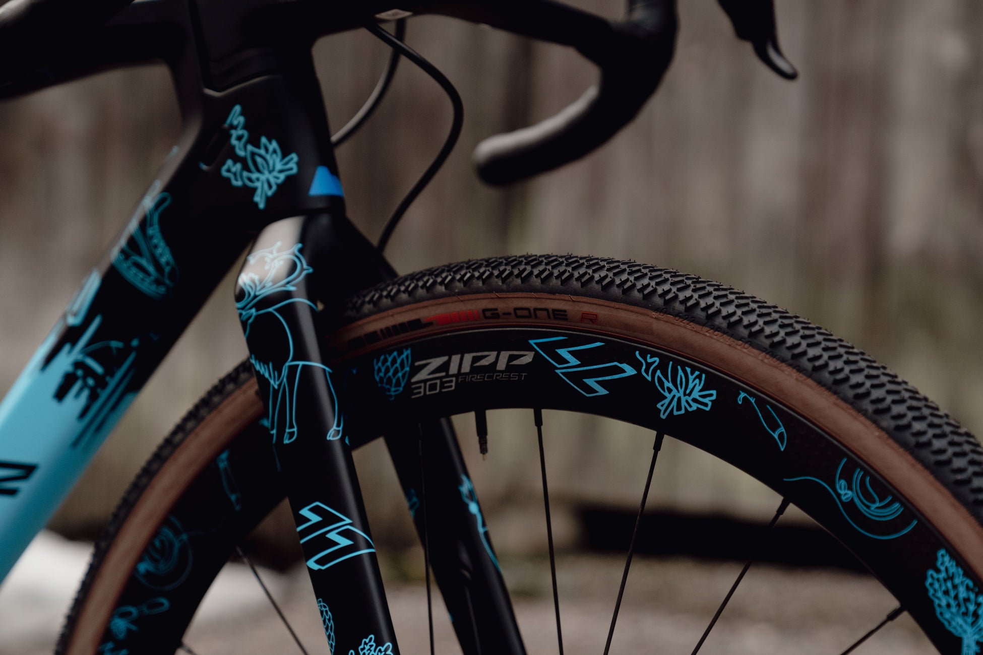 バイクの走行性能と乗り心地に大きく影響を与える、タイヤの選択と空気圧。完成車は幅40mmのタイヤに、グラベル用途に最適なリム内幅25mmのZipp(ジップ)社製ホイールを採用。より低圧での使用を可能にし、凸凹の路面を浮遊するように走ることができるだけでなく、リム打ちパンクのリスクも低減します。キャニオンとSchwalbe(シュワルベ)社製のG-one Rタイヤはハイレベルなトラクションと低転がり抵抗を両立。それでいてグラベルを走り続けるための耐久性、しなやかさも持ち合わせています。