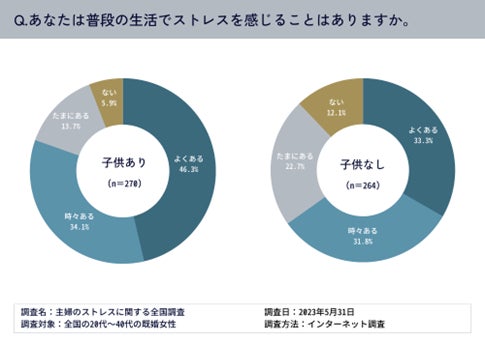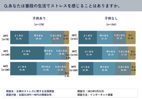 子供がいる既婚女性「ストレスを感じることがよくある・時々ある」が8割超!約4割がストレスの原因について相談できる人がいない実態が明らかに。