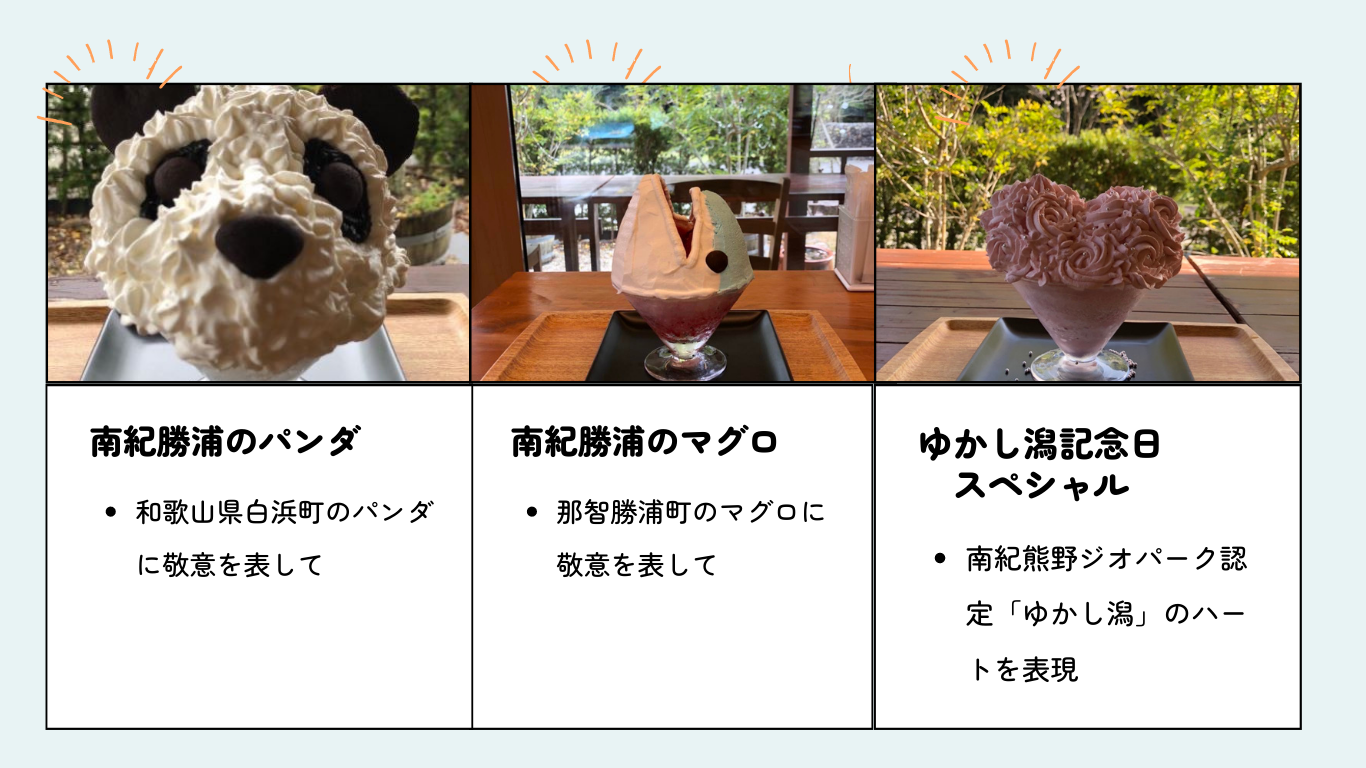 足を運びたくなるかき氷屋さんを目指し、南紀勝浦の観光地の一つになれるようにカフェコッペ でしか食べられない、体験できない、かき氷を通じて感動を提供し続けます。