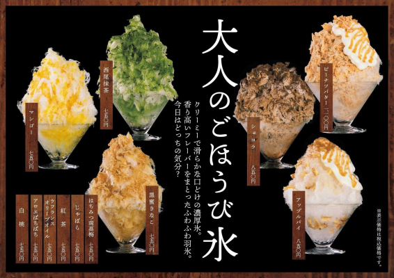 「おかわりがしたくなるかき氷」をコンセプトに、ふっわふっわのかき氷を常時12~16種類提供しています。
