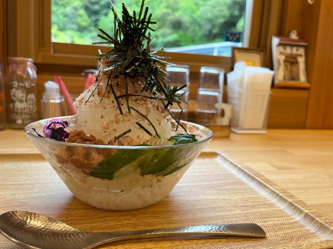 氷の削り方を工夫することでふわふわ食感で暑い夏にぴったりの食事系かき氷です。