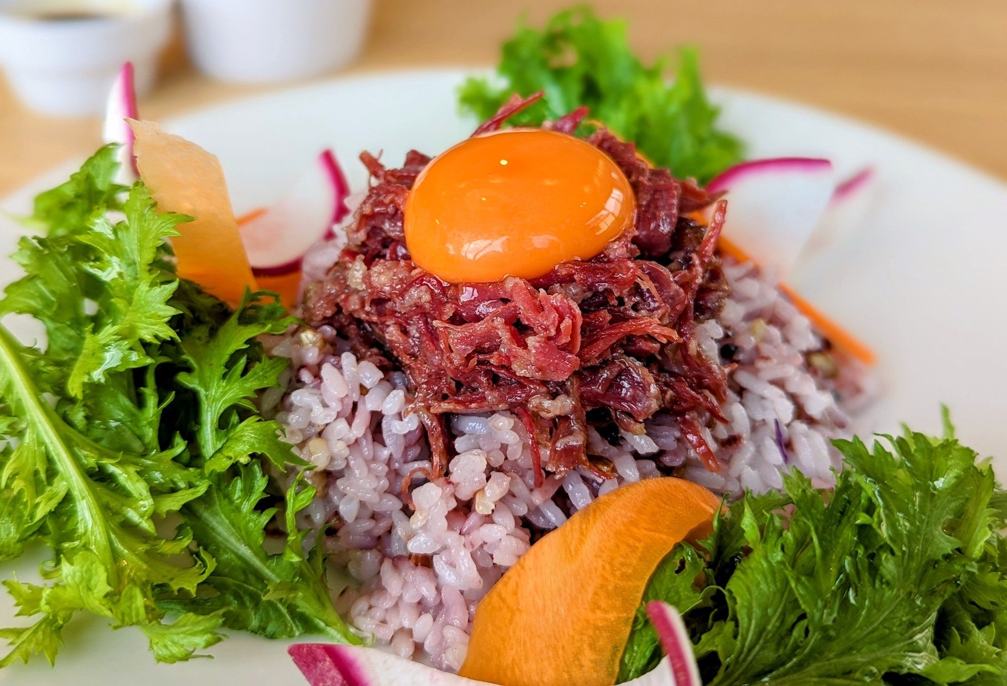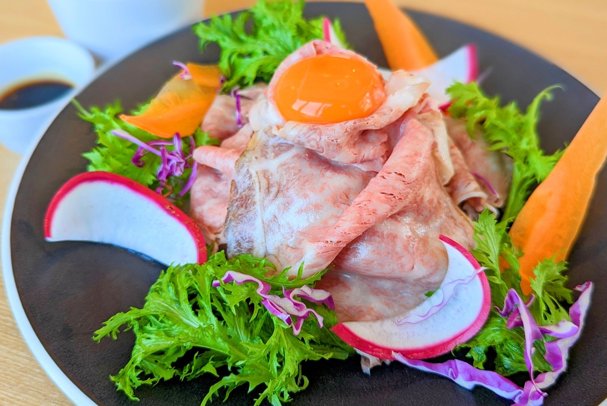 店舗で焼き上げたローストビーフは口溶けが良く旨味が濃厚、こだわりの卵、彩り豊かな鎌倉野菜とあわせた贅沢なひと皿です。店内は明るくベビーカーも入れる広さもあり、ご家族やママ友ともゆっくりお食事を楽しめる空間です。