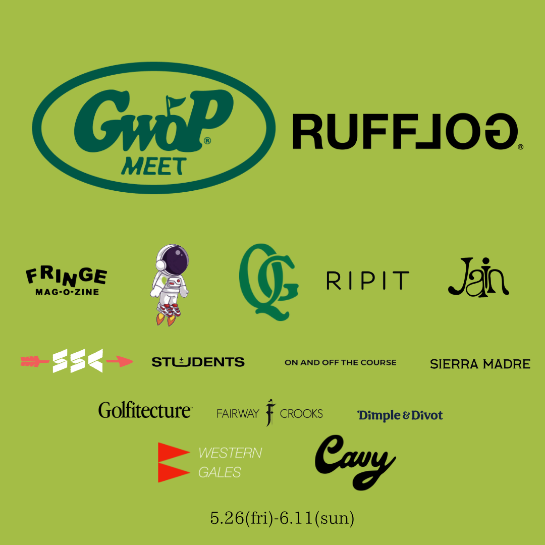 こうした背景のもと、RUFFLOG主催で、アメリカの人気ストリートゴルフブランド14社が一堂に会し、RUFFLOG代官山店とオンラインストアにて共同ポップアップイベント「Gwop meet in RUFFLOG代官山」を開催いたします。本イベントは、ストリートゴルフカルチャーの先駆けであるGwop meet社の協力の下、5月26日(金)から6月11日(日)まで開催されます。
