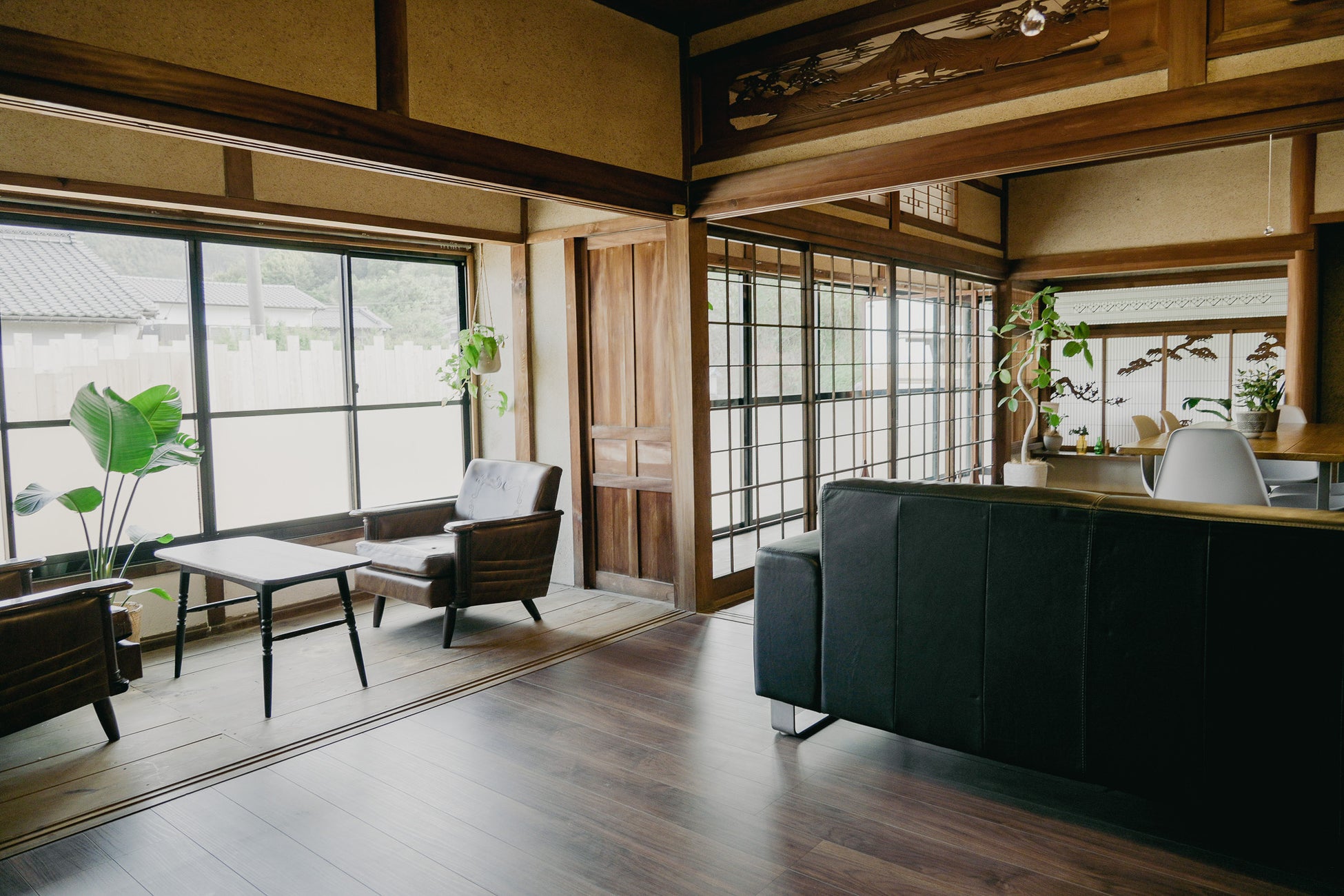「THE LANDSCAPE」は、2023年5月にオープンした一棟貸し宿です。古き良き日本家屋は築80年で、かつては左官職人のお屋敷でした。日本家屋らしい欄間が特徴的で美しい作りです。しばらく空き家だったこのお屋敷を、実際に因島で暮らすスタッフがひとつひとつDIYでリノベーションし生まれ変わらせました。古さと新しさを融合させた和モダンな内装は、初めて来たのに気負いしない、そんなリラックスした雰囲気が漂います。