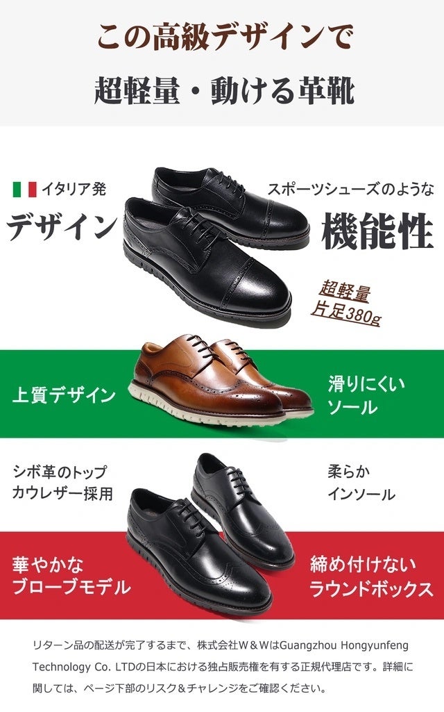 革靴のデザインでありながら、スポーツシューズのような軽さと履き心地を実現しました。毎日の通勤や週末の外出、旅先でも大活躍します。