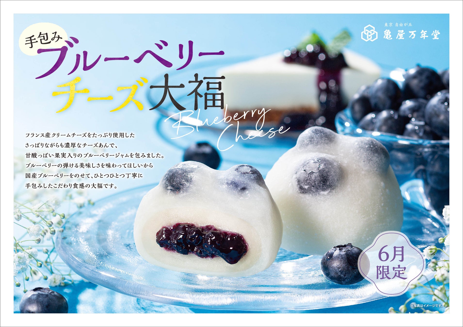 まるでチーズケーキのような大福!こだわりの手包み製法『手包みブルーベリーチーズ大福』亀屋万年堂直販28店舗にて6月限定販売