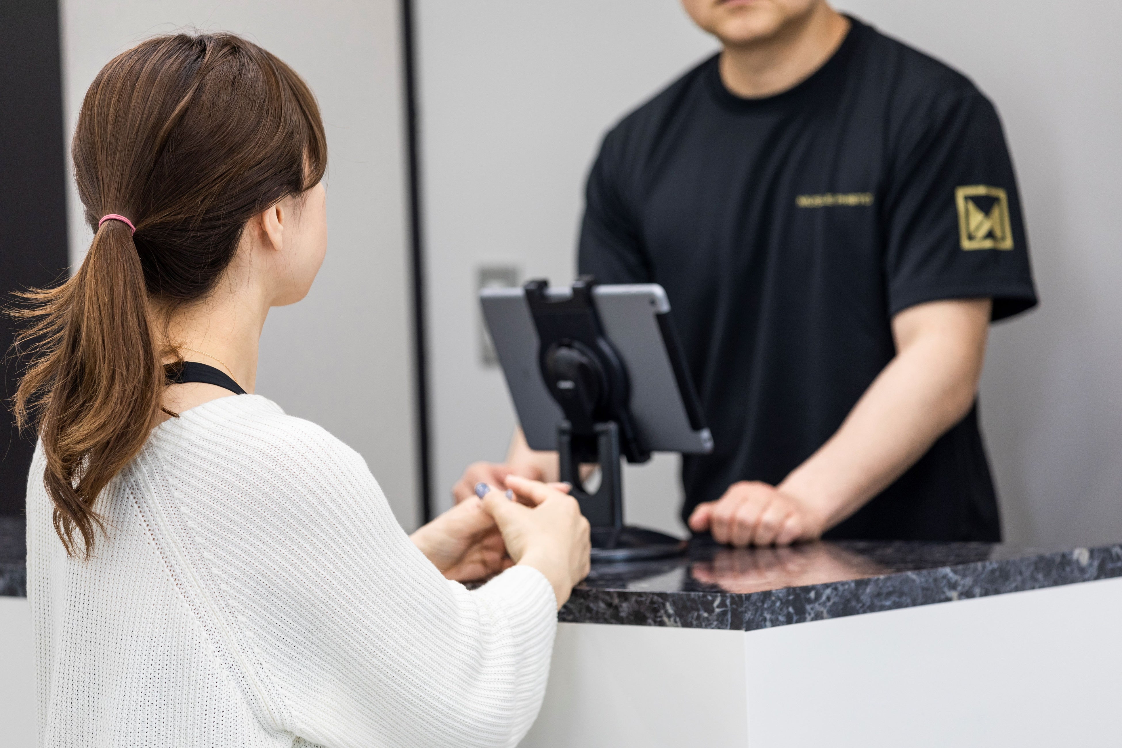 受付を済ませ、トレーニングウェアに着替えます(初回の体験時は、着替える前にアンケートにご記入いただきます)。