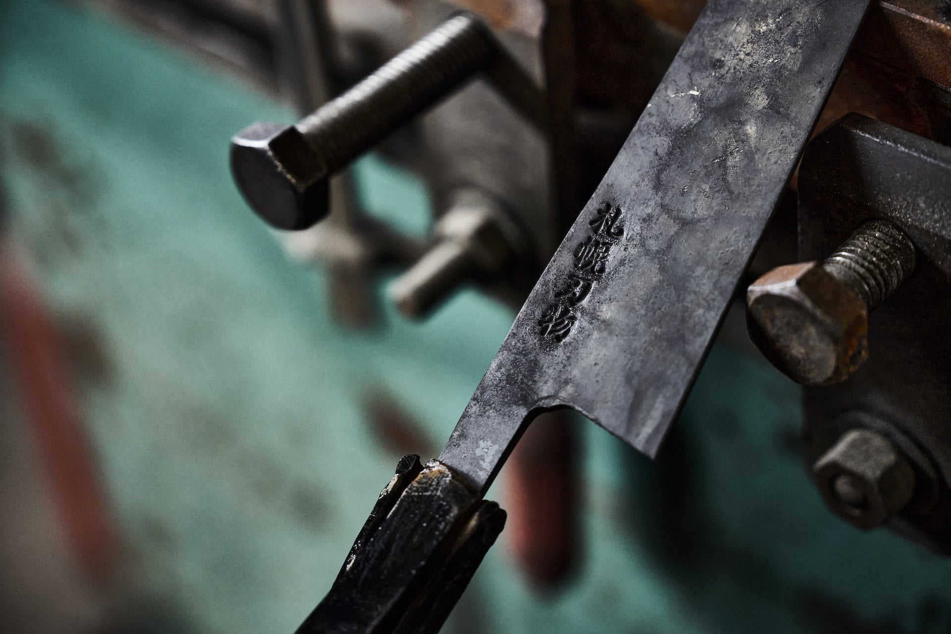 型を使用せず寸法や形を自由に造り、職人一人で鍛え上げる打ち刃物の技術でできる包丁は、一本一本の表情が微妙に異なり、それぞれが無二の包丁と言えます。