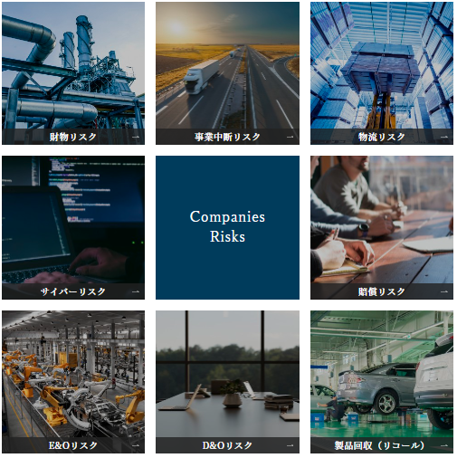 事業主が保有・管理する施設等の欠陥・不備によって他人にケガを負わせた時や異物混入・リコールによる損失、会社役員としての業務遂行に起因した賠償損害(D&O)、職務の遂行上の過失やスペック違反等による賠償損害(E&O)等のリスクです。