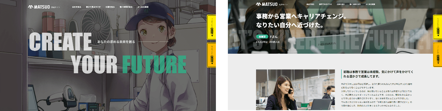 (右:『採用サイト』トップ / 左:『働く仲間を知る』ページ)