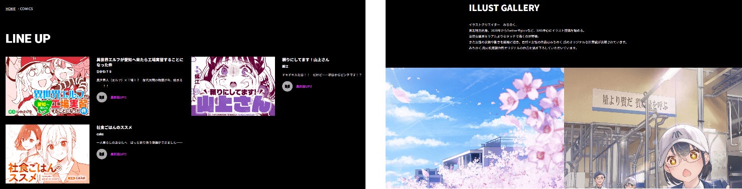 (右:『COMICS』ページ / 左:『ILLUST GALLERY』ページ)