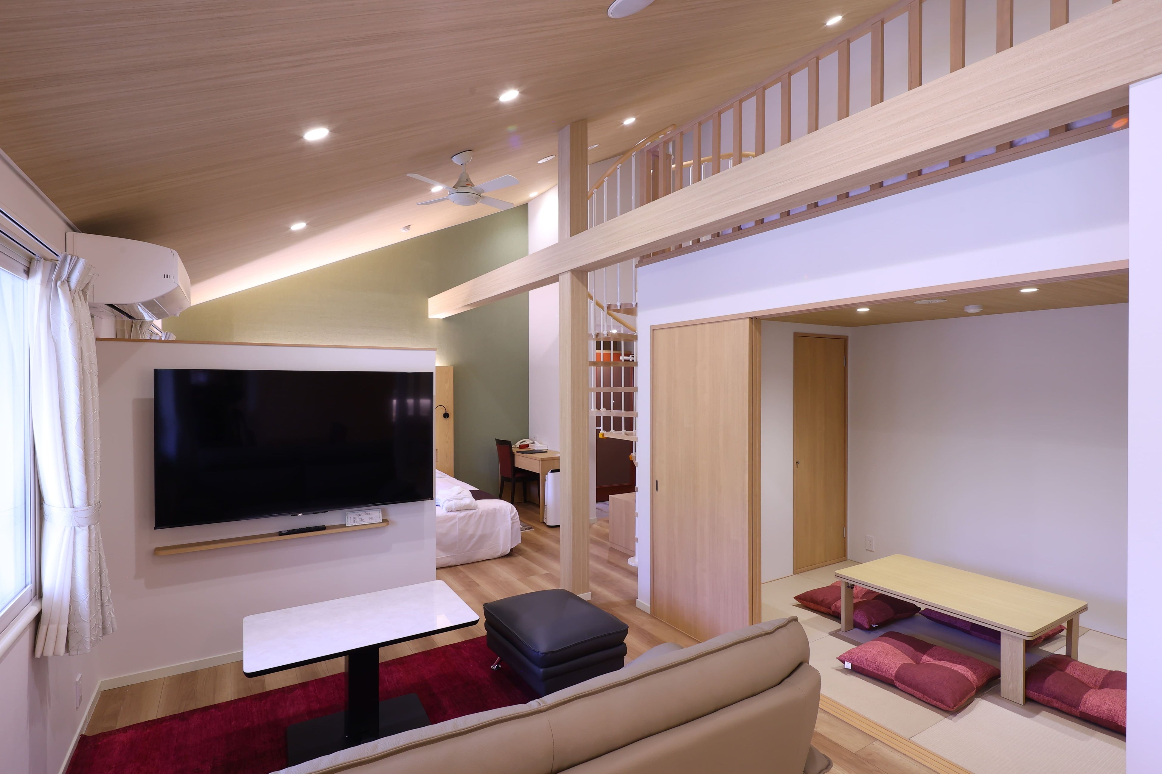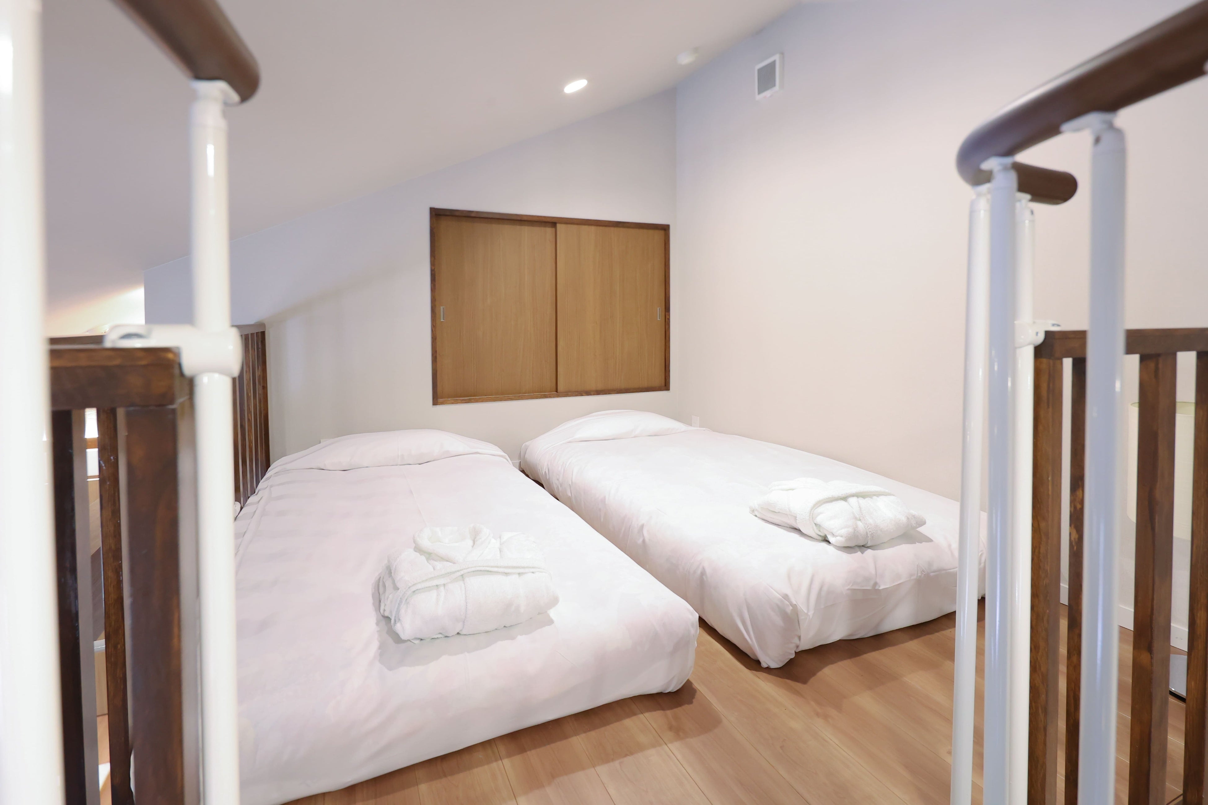 ベッドタイプ:フォース(ハリウッドツイン、ロフトにシングル2台)5名様以上の場合は畳スペースにお布団をお敷きいたします。