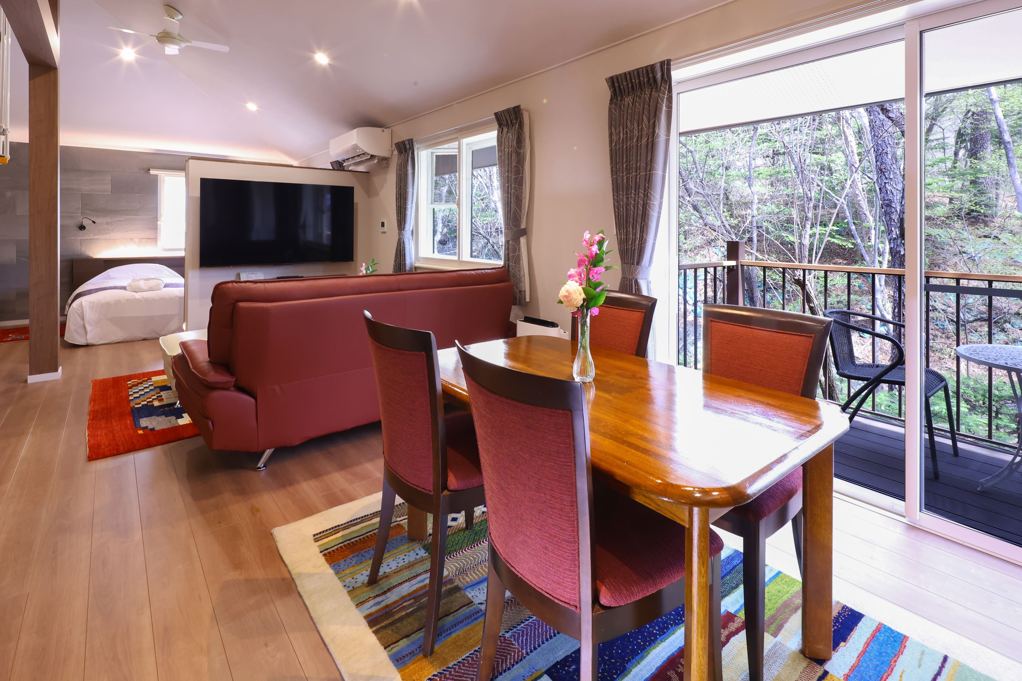ペット同伴ではない宿泊者も利用が可能で、周辺観光やスキー、長期滞在・ワーケーション、観光拠点に、夏季だけでなく通年で軽井沢での滞在を楽しむことができます。お食事はお部屋食にて、夕食は地元食材を使用した本格フランス料理のフルコースを提供。ペットとご家族、お仲間で気兼ねなく滞在ができます。