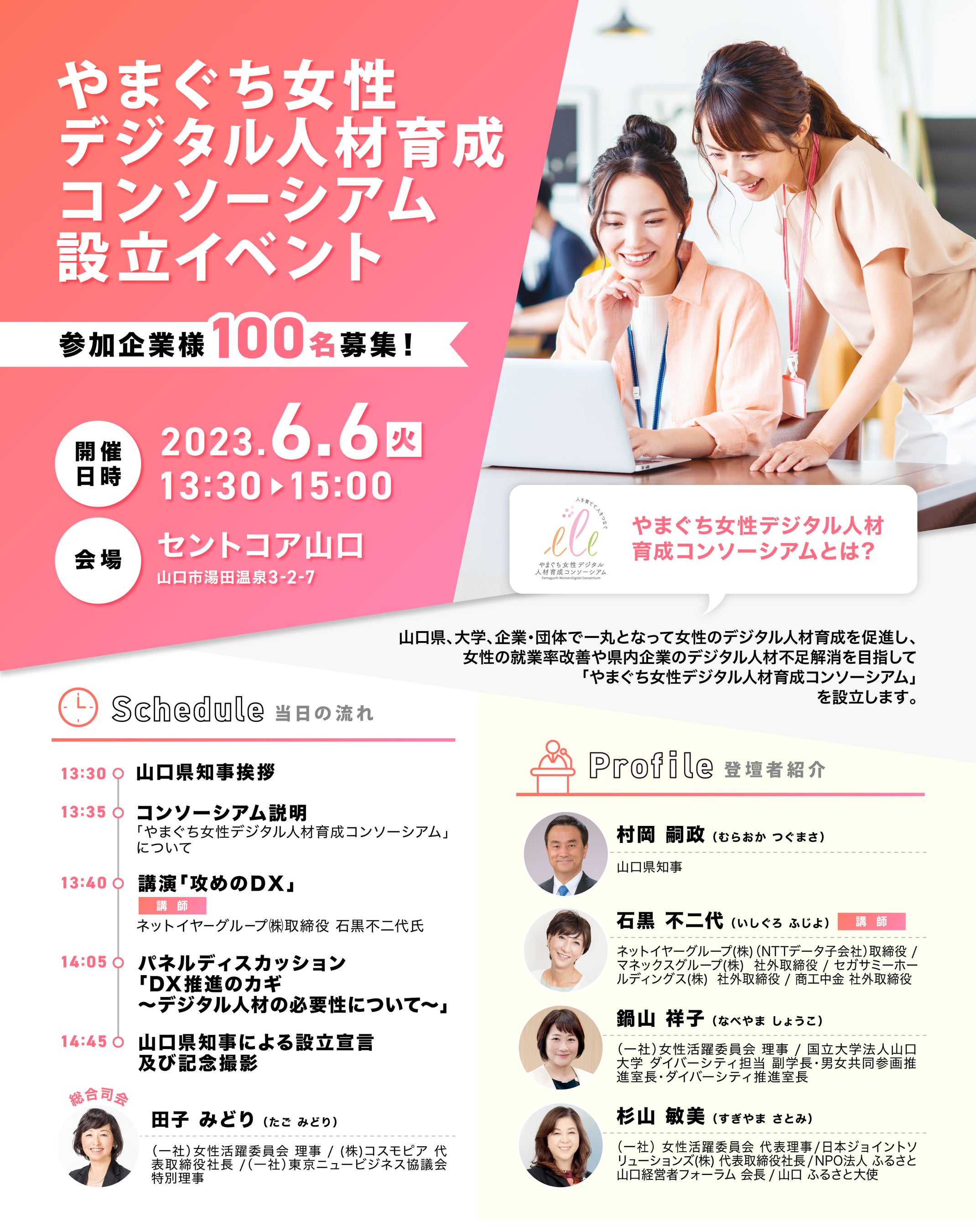 【山口県】「やまぐち女性デジタル人材育成コンソーシアム」設立設立イベントのご案内 主催:山口県