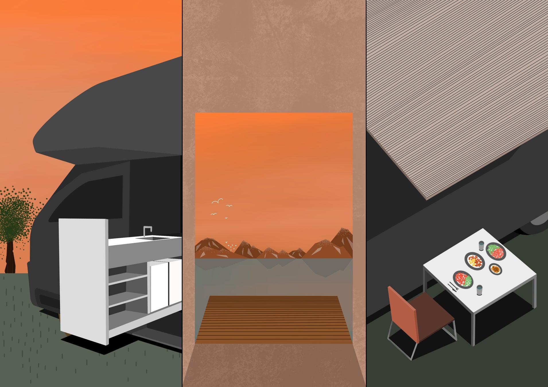 vanhotelは私たちの建築設計事務所の経験や知識を活かして、キャンピンカーにおける空間の質の向上を目指します。車両としての空間に縛られず、宿泊し暮らす空間として、内装材やディテールにこだわり、今までキャンピングカーに手の出しづらかったミレニアル世代を中心に利用していただけるよう提案し、国内キャンピングカー市場に一層の賑わいと活気を創りたいという想いから創立に至りました。
