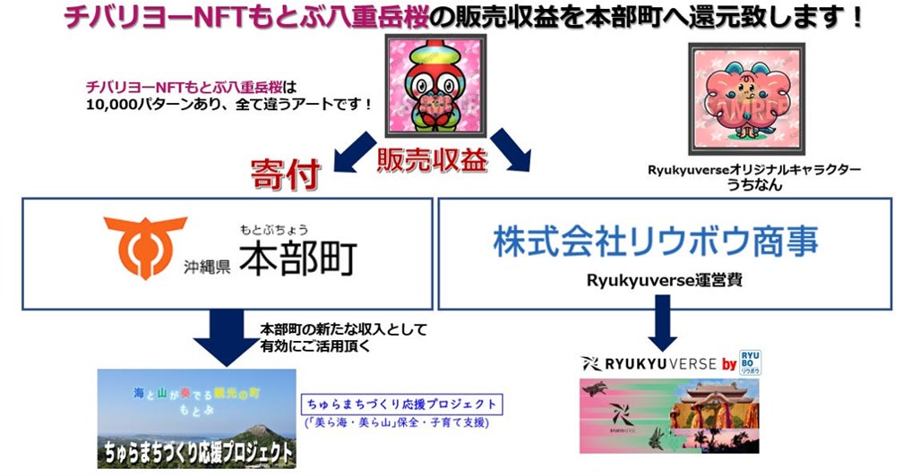 本部町(平良武康町長)と株式会社リウボウ商事(本社:沖縄県那覇市/代表取締役社長 糸数剛一)は、「作り手」と「売り手」さらに「行政(本部町)」が連携し、新たなデジタル技術であるNFTを活用して、本部町を応援することを目的とした沖縄NFTマーケットプレイス事業「Ryukyuverse(琉球バース)構想」で相互協力することに合意し、包括連携協力に関する協定を締結致します。