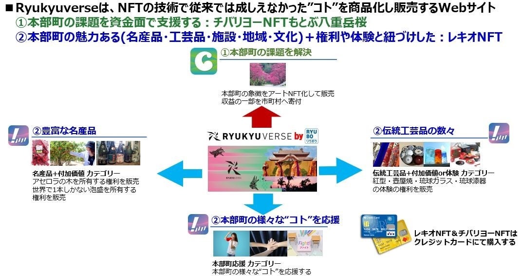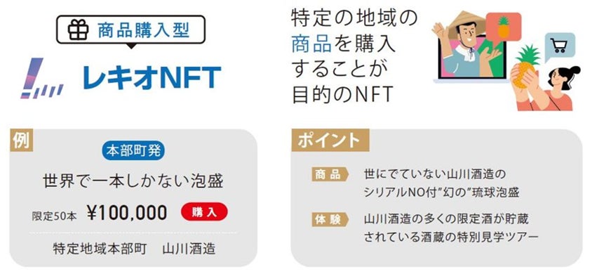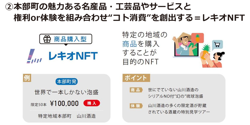 ②本部町の魅力ある名産品・工芸品やサービスと権利or体験を組合せ「コト消費」を創出する=レキオNFT