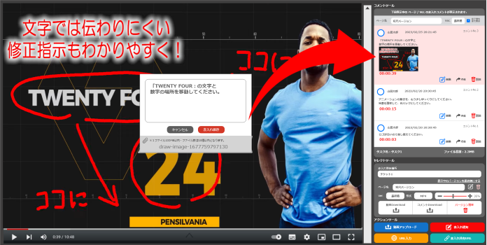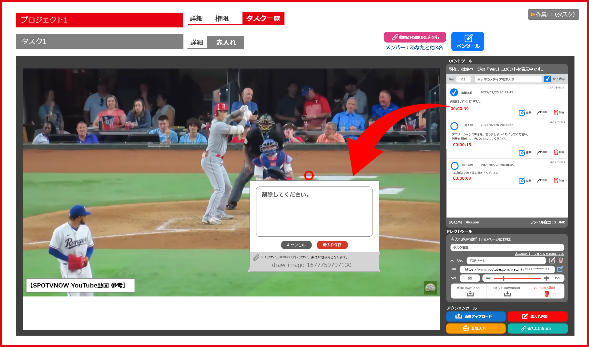 修正したい場所をチェック&コメント入力するだけで簡単に指示書を作成でき、しかもメンバー招待や指示書送付もワンクリック!