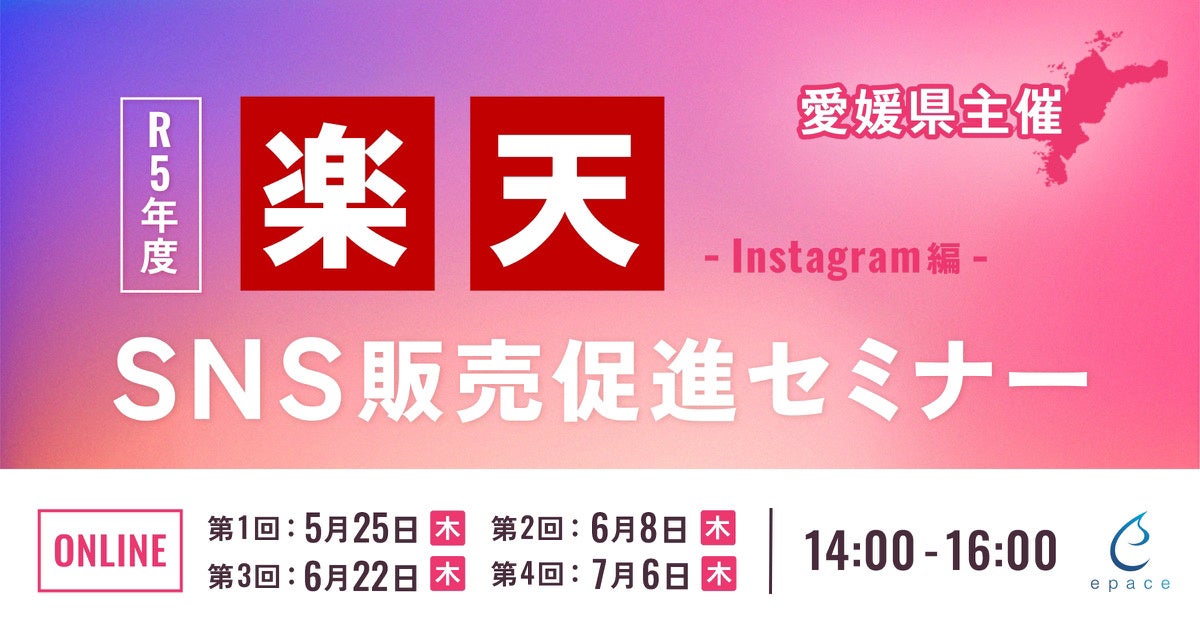 愛媛県と楽天の共催のセミナー「楽天SNS販売促進セミナー -Instagram編-」は、愛媛県内の事業者様を対象に「Instagramでの集客・販売促進」をお伝えするセミナーとなっております。そして今回、セミナーの講師を、イーペースのSNSブランディングマネージャーが務めました。