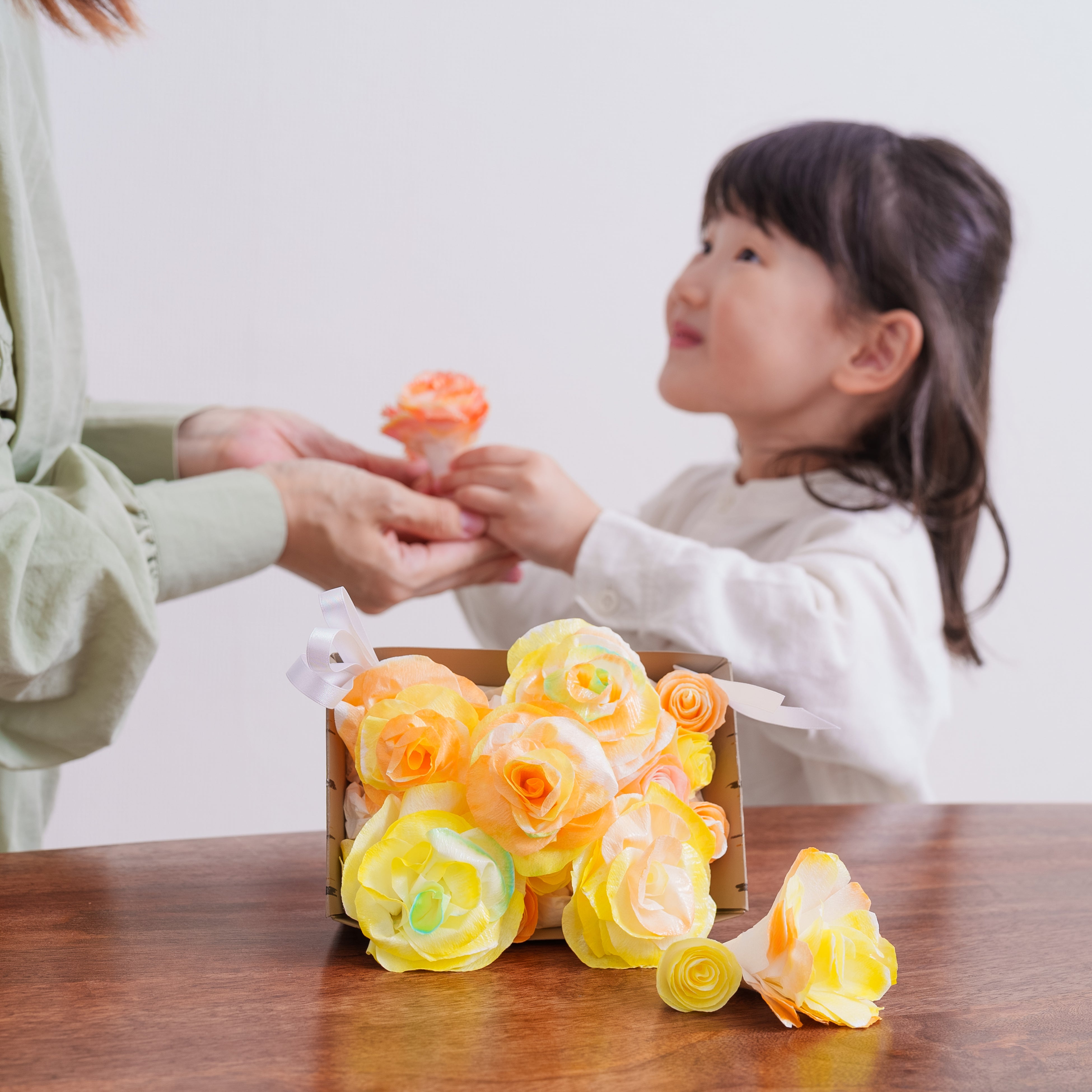 カラフルなバラやカーネーションなどの花を作ることができる工作キットです。
