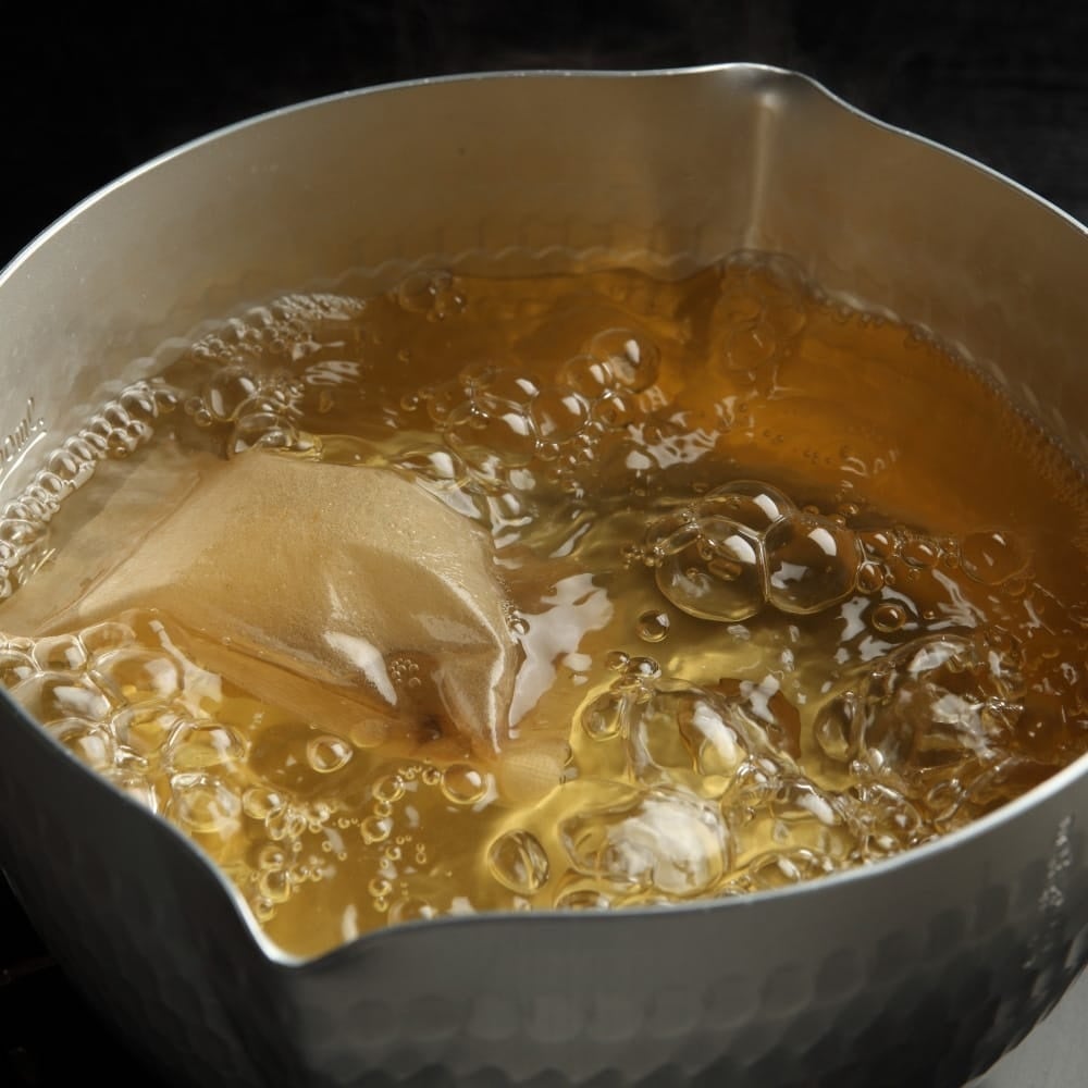 厳選された素材をギュッと濃縮したパックの中身は塩と醤油の下味が付いていますので、わずか2~3分の煮出しで誰でも簡単にプロの料理人が作るような、うまみたっぷりのおだしを取ることができます。